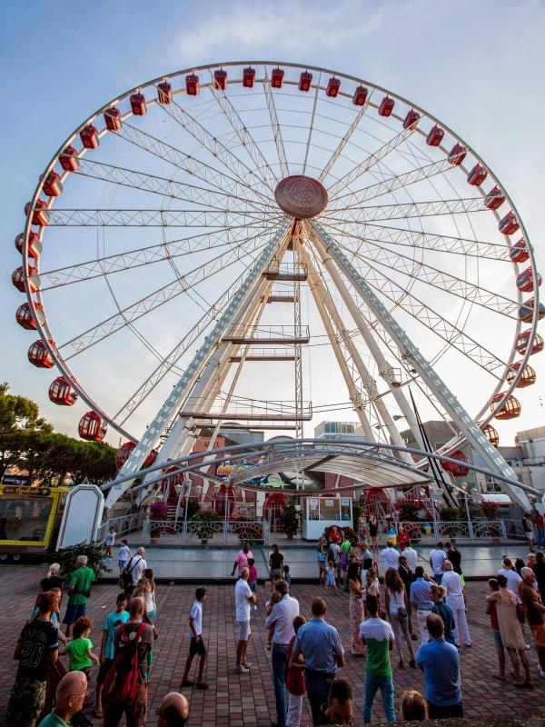 Riesenrad: Das Rad ist mit 42 Kabinen mit Klimaanlage ausgestattet und ermöglicht einen atemberaubenden Blick auf 55 Meter Höhe an der Küste und der Lagune von Venedig. Das Rad ist etwa 500 Meter von uns entfernt, und liegt an der Piazza Brescia.