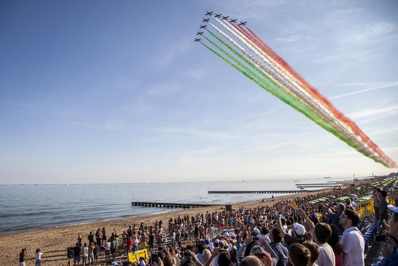 Frecce Tricolori: Die große Show mit Pfeilen tricolor ist jedes Jahr in Jesolo mit Stunts aller Art von der Kunstflugstaffel Nummer eins in der Welt.